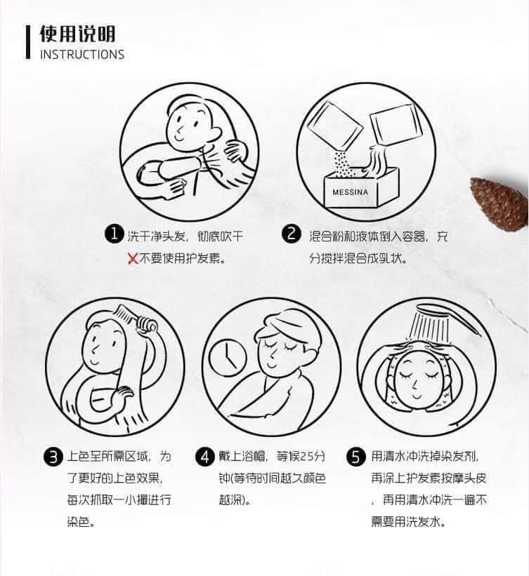 🌿Messina 的純天然染髮膏不含防腐劑, 氨,過氧化氢, 降凝劑, 間苯二酚,重金屬,轉基因等化學成分. Missina 主要采用純植物提取的成分, 讓大家可以放心使用,享有安全又舒適的染髮體驗.